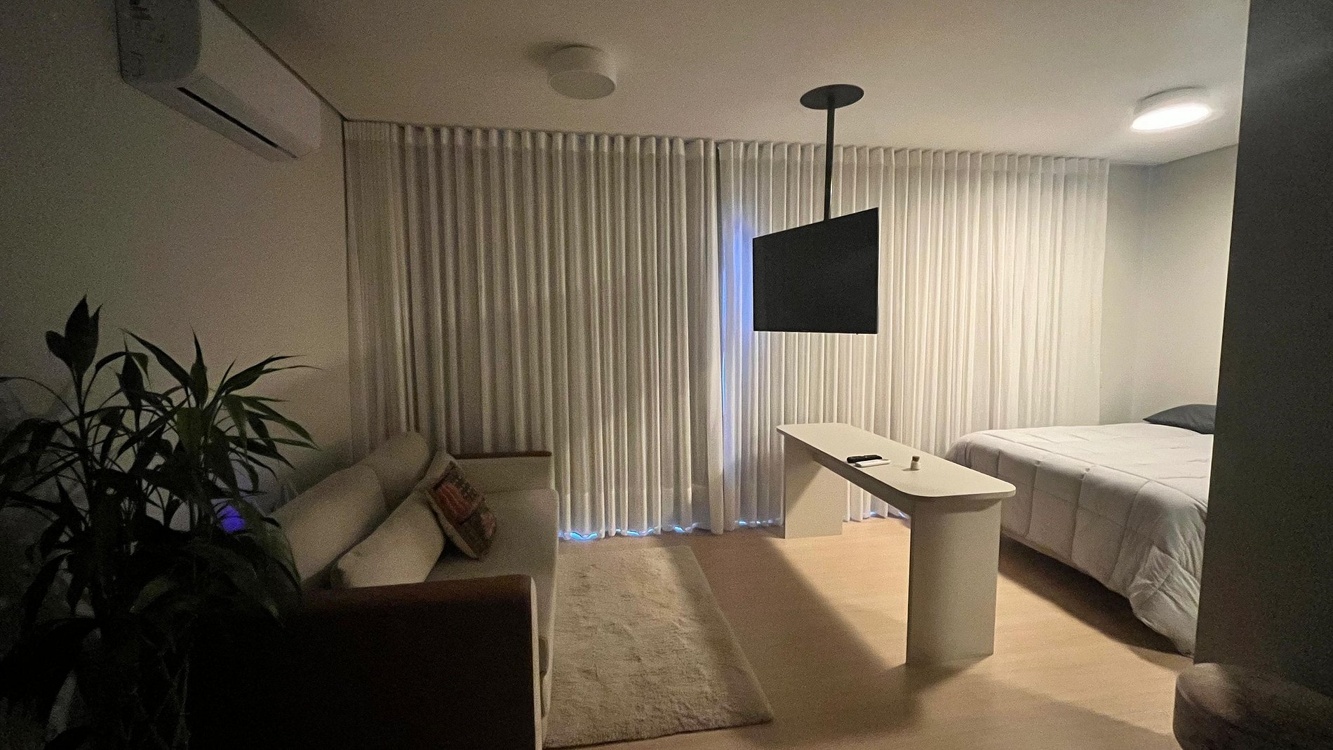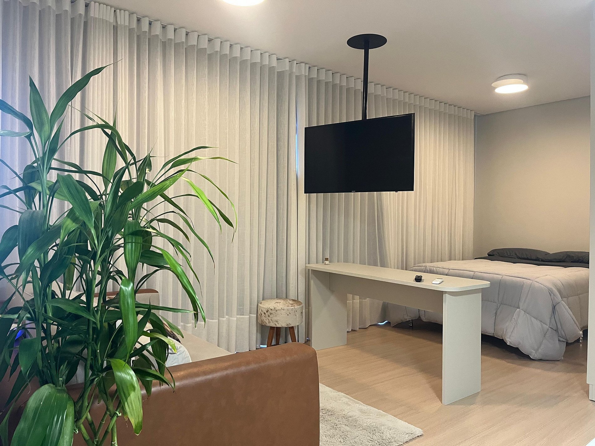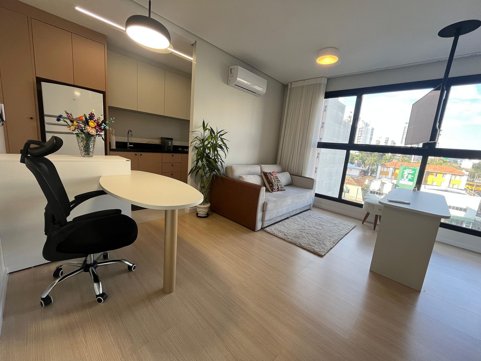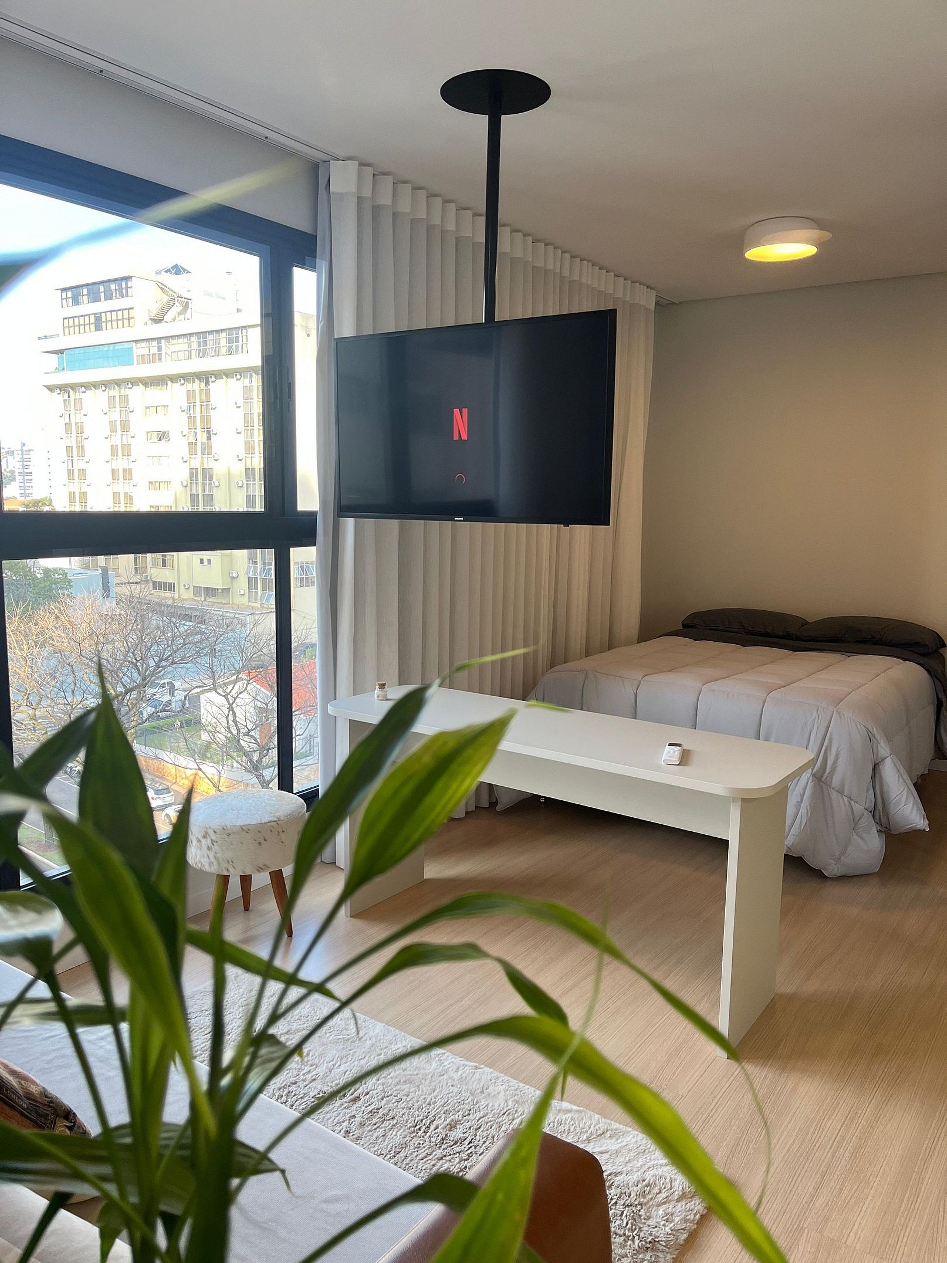 Este studio foi pensado para oferecer conforto, praticidade e uma experiência agradável. Equipado com ar-condicionado, TV 43", cama box, sofá-cama e cozinha completa com eletros e utensílios — incluindo airfryer, liquidificador, cafeteira e muito mais. Perfeito para quem busca conforto, praticidade e ótima localização.