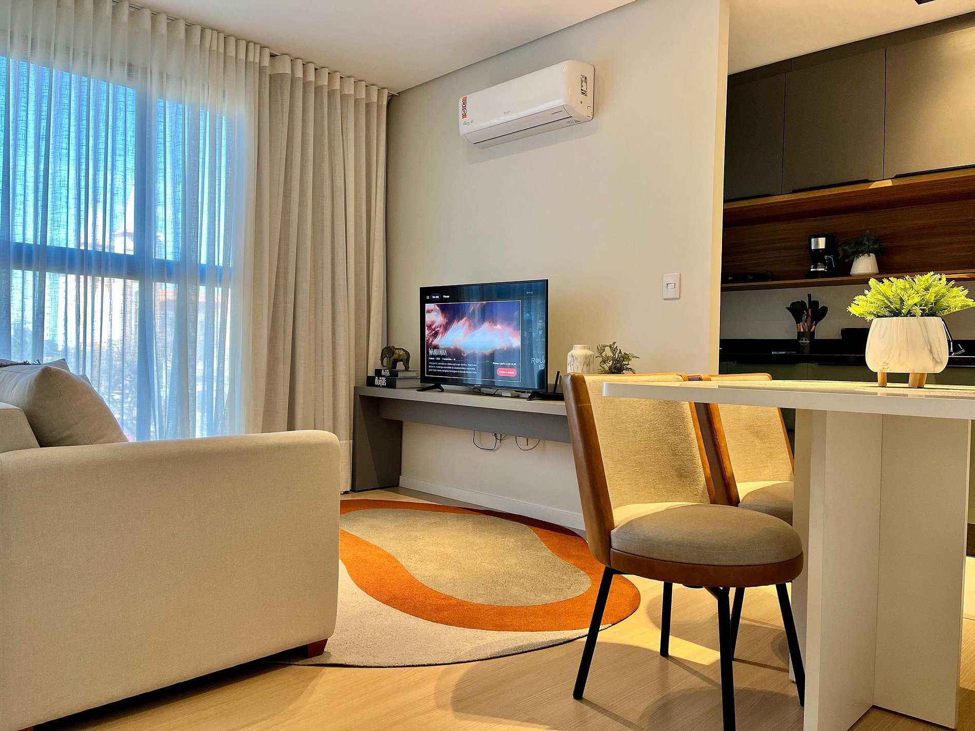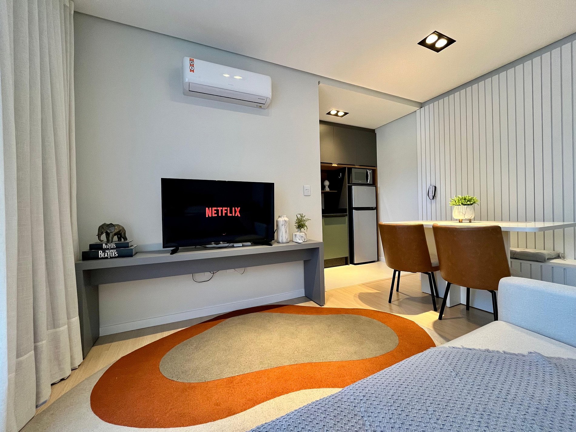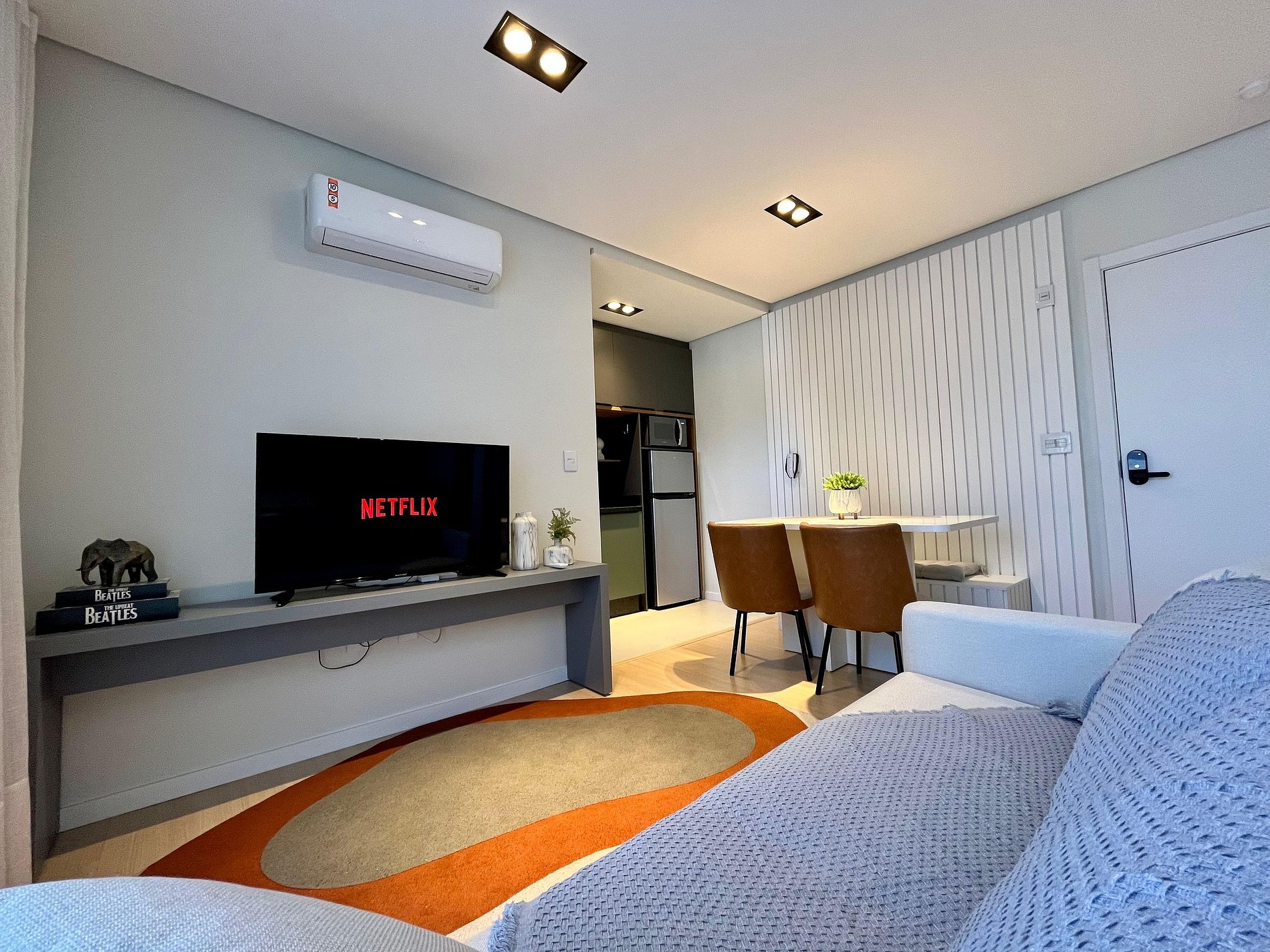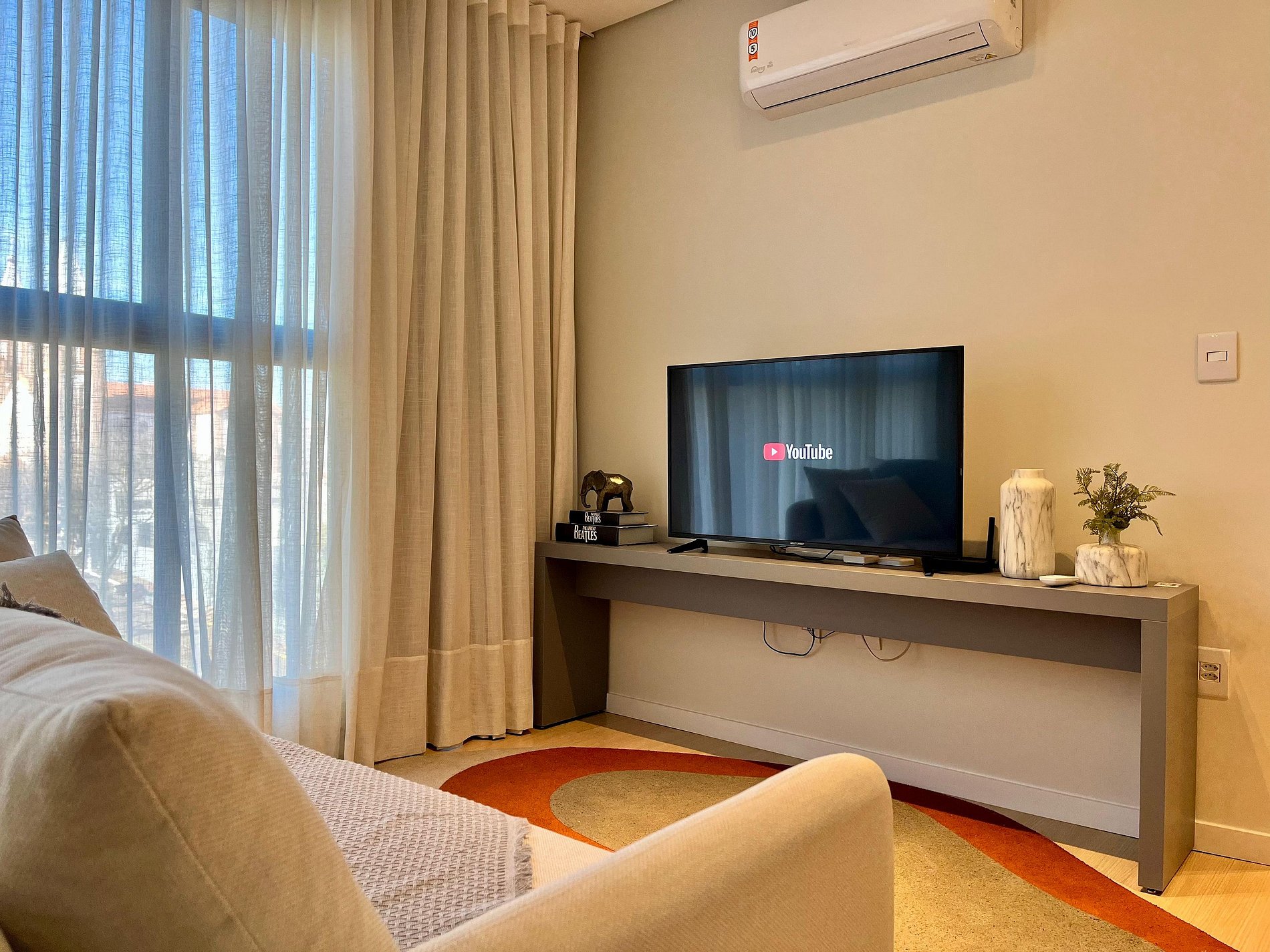 Este studio foi pensado para oferecer conforto, praticidade e uma experiência agradável. Equipado com ar-condicionado, TV 43", cama box, sofá-cama e cozinha completa com eletros e utensílios.