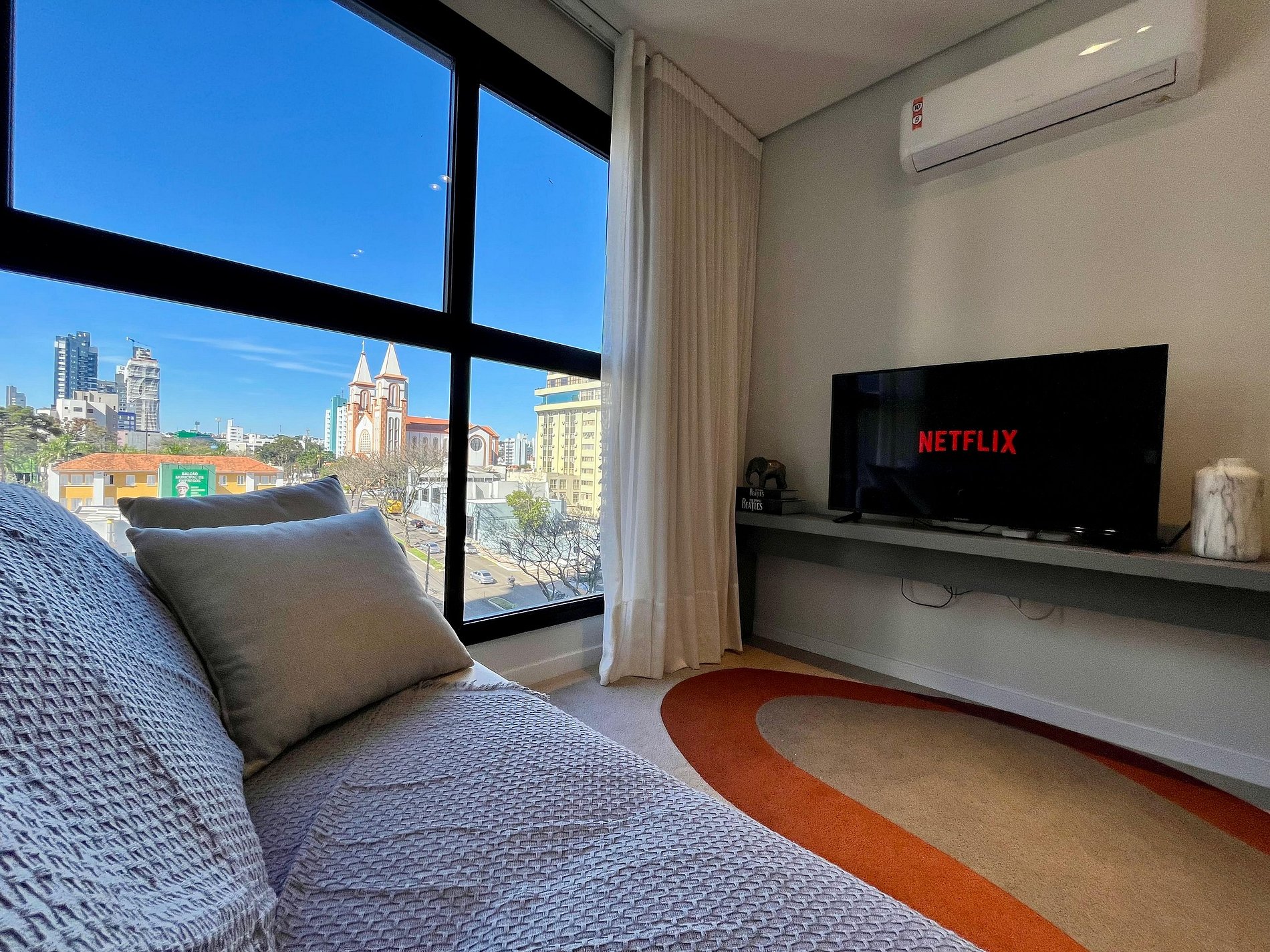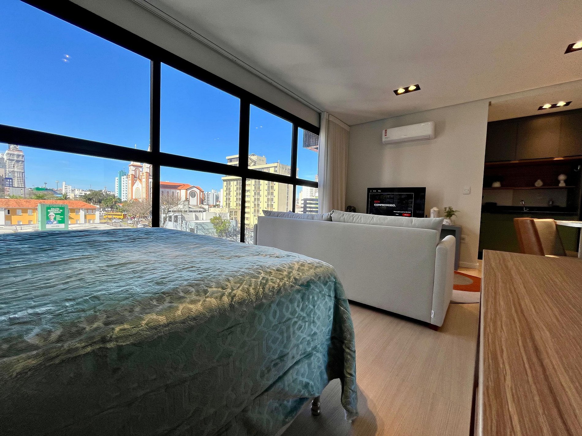 Studio novo e completo no coração de Chapecó, ao lado da Catedral Santo Antônio e da Praça Coronel Bertaso. A apenas 400 m de um dos principais supermercados da cidade, com restaurante e café. Próximo a barzinhos, lanchonetes e baladas do Centro. Também fica perto da Arena Condá (850 m), Delegacia Civil (400 m), Eco Parque (2,6 km) e Shopping Pátio Chapecó (4 km).