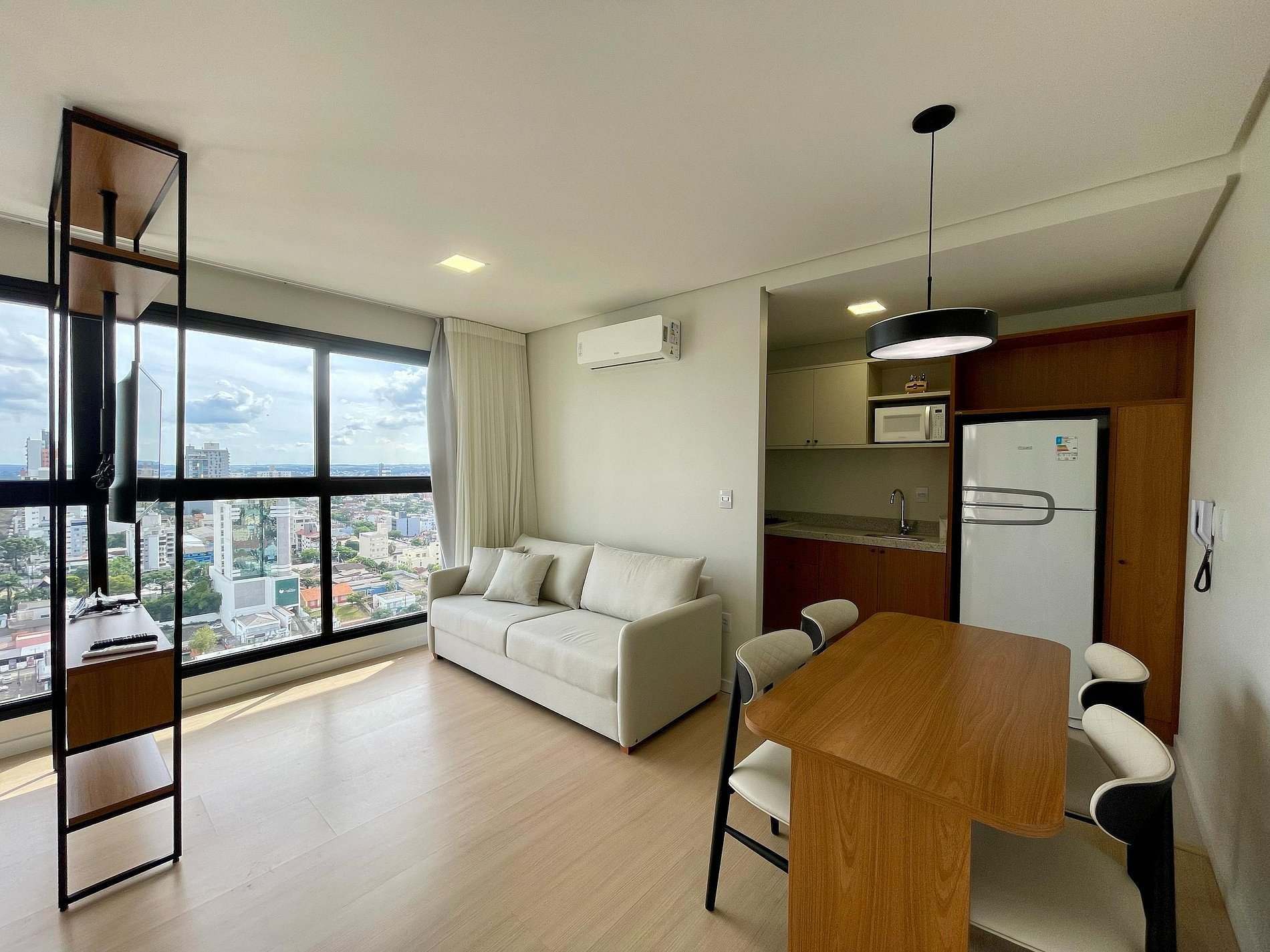 Apartamento novo, vista deslumbrante, com móveis e eletros recém-instalados, pensado para oferecer conforto e praticidade. Conta com TV, ar-condicionado, água com aquecimento a gás. Ambiente moderno, aconchegante e super funcional, no centro de Chapecó, perto de tudo!