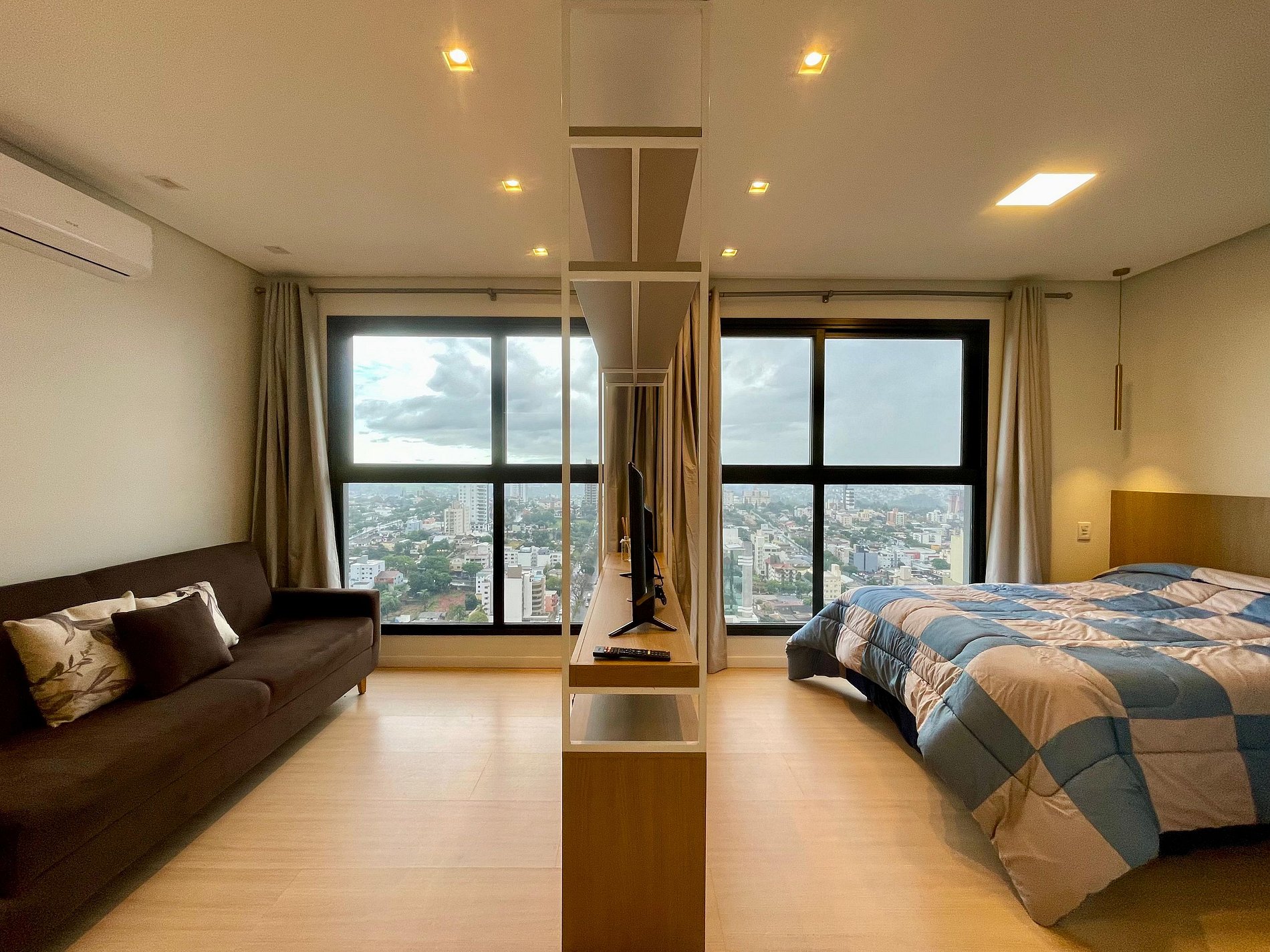 Studio moderno no coração da cidade, com vista incrível! Localizado em condomínio completo com piscina e academia, ideal para quem busca conforto, praticidade e uma estadia inesquecível.